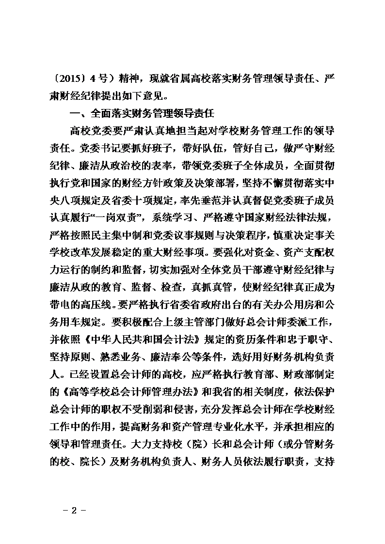 省教育厅关于省属高校落实财务管理领导责任严肃财经纪律的若干意见